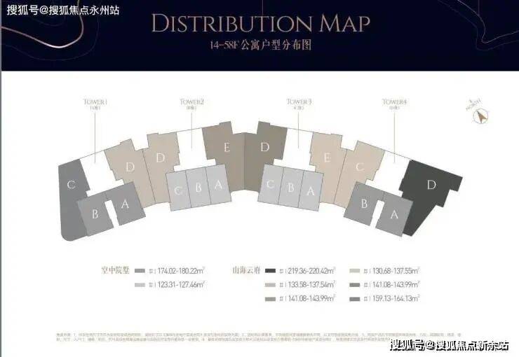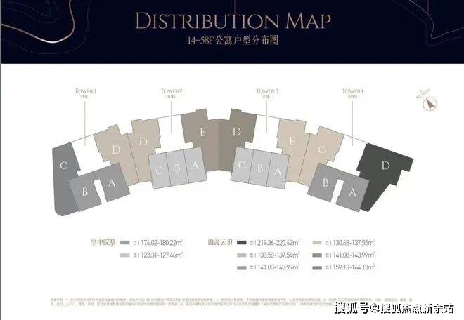主力产品为建面约123-220平米的海景客厅城市院墅,户户看海户户向阳,包括约123-180平米的空中院墅和约133-220平米的山海云府。