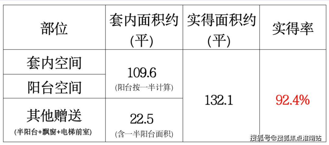 建面约143平四房阳台附赠更大、门口的私家电梯厅预测能有9-9.5个平方的附赠;如果都加在一起,实得率超92%,实际可利用面积超过132平!