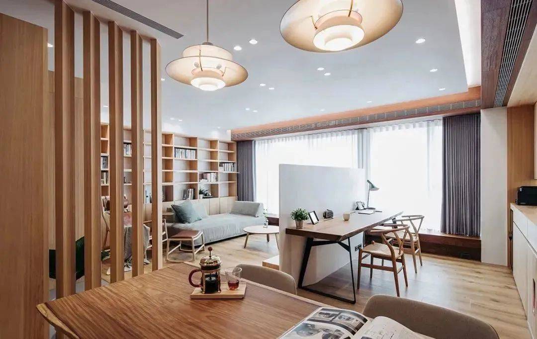 对于小户型来说,完全可以“见缝插针”。可以用大型书架来代替隔断,不仅能轻松划分出两个独立的区域,同时也能满足书籍的收纳要求。