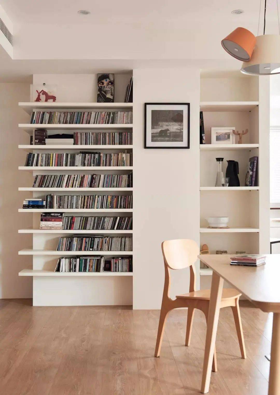 如果有非承重墙体,也可以把这些墙体进行拆除,用嵌入式书架代替,不浪费每一寸空间。