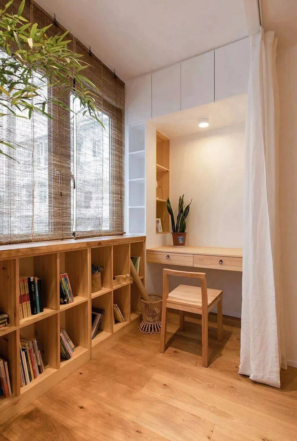 把阳台封起来,这里也可以摆放一个小书柜,平时就坐在这里看看书,岁月静好。